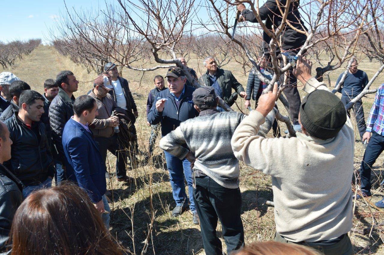 On 23.03.2017 Tsirani Aygi LLC and Shen NGO jointly conducted at Shenik orchard a field day on pruning of fruit trees for the members of Organic Fruit Producers Marketing Cooperative as well as farmers from neighboring 4 communities. This event was organised within OASI supported "Expansion of Organic Fruit Production Through Upgrading the Organic Orchard Management and Streamlining Horticulturist Farmers into Organic Agriculture Cooperative" project. The attendees learnt the peculiarities and techniques of pruning apricot, apple, peach and plum trees as well as vines. Experienced agronomists of Shen NGO presented the pruning techniques, answered the questions of attendees as well as let the farmers to do test pruning by themselves. The event attended totally 30 participants who received also handouts on pruning techniques and features of organic orchard cultivation methods.