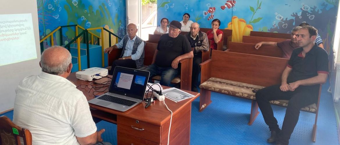 En août, à Gyulagarak et Bazum, région de Lori, nous avons organisé une formation-consultation théorique sur le thème “Maladies des cultures agricoles et moyens chimiques modernes de lutte contre les ravageurs et leurs particularités d'application” dans le cadre du projet “Création et renforcement des coopératives agricoles grâce à l'utilisation d'une législation améliorée et de technologies modernes” financé par l'organisation allemande “Pain pour le Monde”. À Gyulagarak, nous avons organisé une formation pour les membres de la coopérative agricole “Hatik” et à Bazum, pour le groupe de commercialisation des agriculteurs formé cette année.
