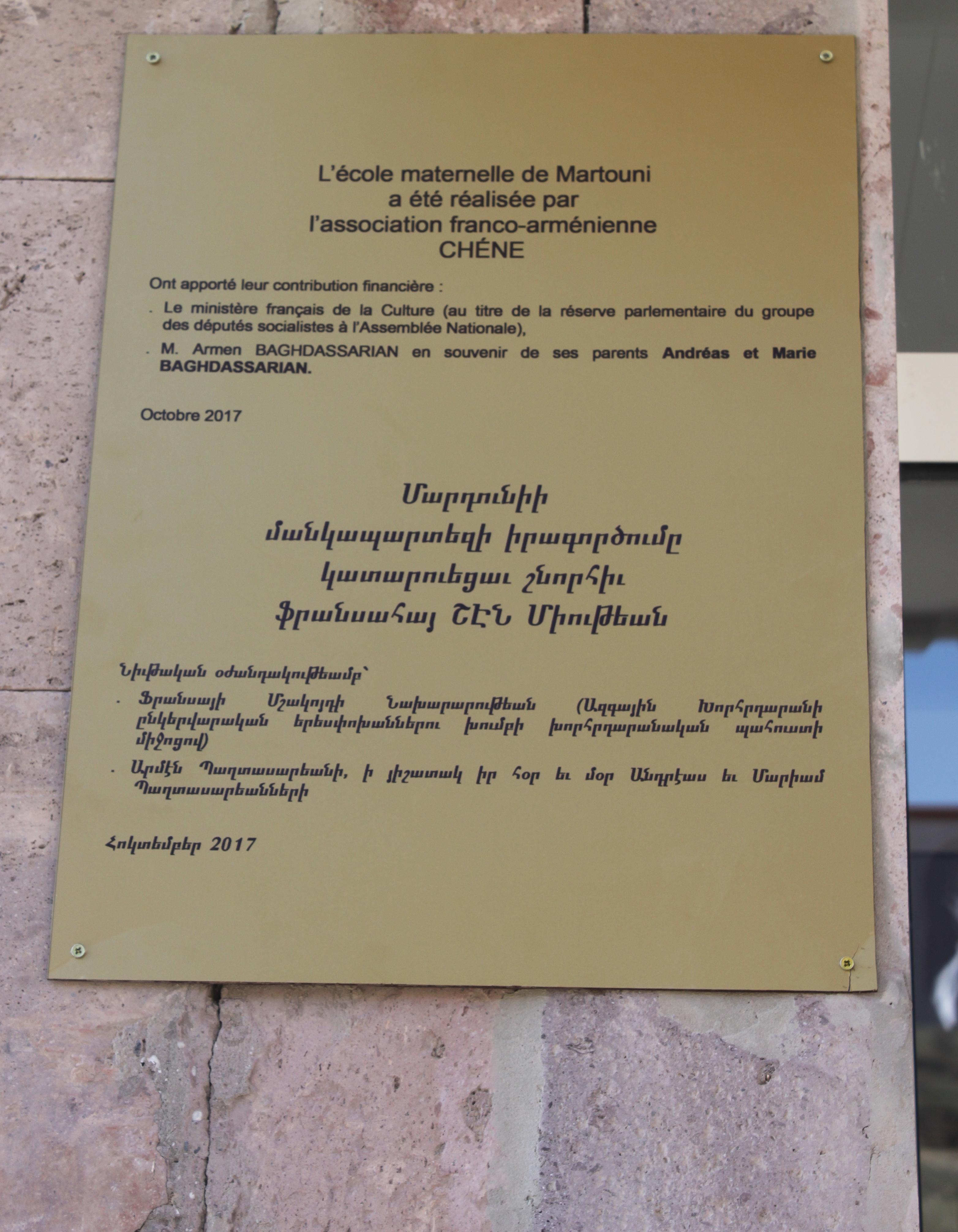 Սույն թվականի նոյեմբերի 16-ին տեղի ունեցավ Գեղարքունիքի մարզի Մարտունի համայնքի 2015-2017թթ․ զարգացման  ծրագրի ամփոփումը: Արարողությանը մասնակցեցին ծրագրի իրականացնողները՝ Ամերիկայի Հայ ավետարանչական ընկերակցությունը, «Զարգացման սկզբունքներ» ՀԿ-ն, «Հայաստանի մանուկներ» հիմնադրամը, Եկեղեցիների համաշխարհային խորհրդի «Հայաստանյան կլոր սեղան» հիմնադրամը, Վորլդ Վիժնը, «Դասավանդի´ր, Հայաստան» հիմնադրամը, «Շեն» ԲՀԿ-ն, ինչպես նաև ներկայացուցիչներ մարզպետարանից և համայնքապետարանից: Այժմ գյուղի մասնավոր տներում և հասարակական շենքերում կա մշտական խմելու ջուր: Գյուղում գործում է «Մարտունի սպառողական կոոպերատիվը»: Գյուղի 13 ընտանիքներ ստացել են կովեր, որոնց ծնած հորթերը կտրվեն ուրիշ ընտանիքներին: Դպրոցում գործում է ռոբոտատեխնիկայի ակումբ և համակարգչային սրահ: Վերաբացվել է երեխաների դպրոցական ճաշարանը: Գյուղն ունի անհրաժեշտ սարքավորումներով հագեցած բուժկետ: Արարողության հյուրերը և համայնքի բնակիչները մասնակցեցին դպրոցի շենքում «Շեն Ֆրանսի» կողմից վերակառուցված և կահավորված մանկապարտեզի բացմանը: