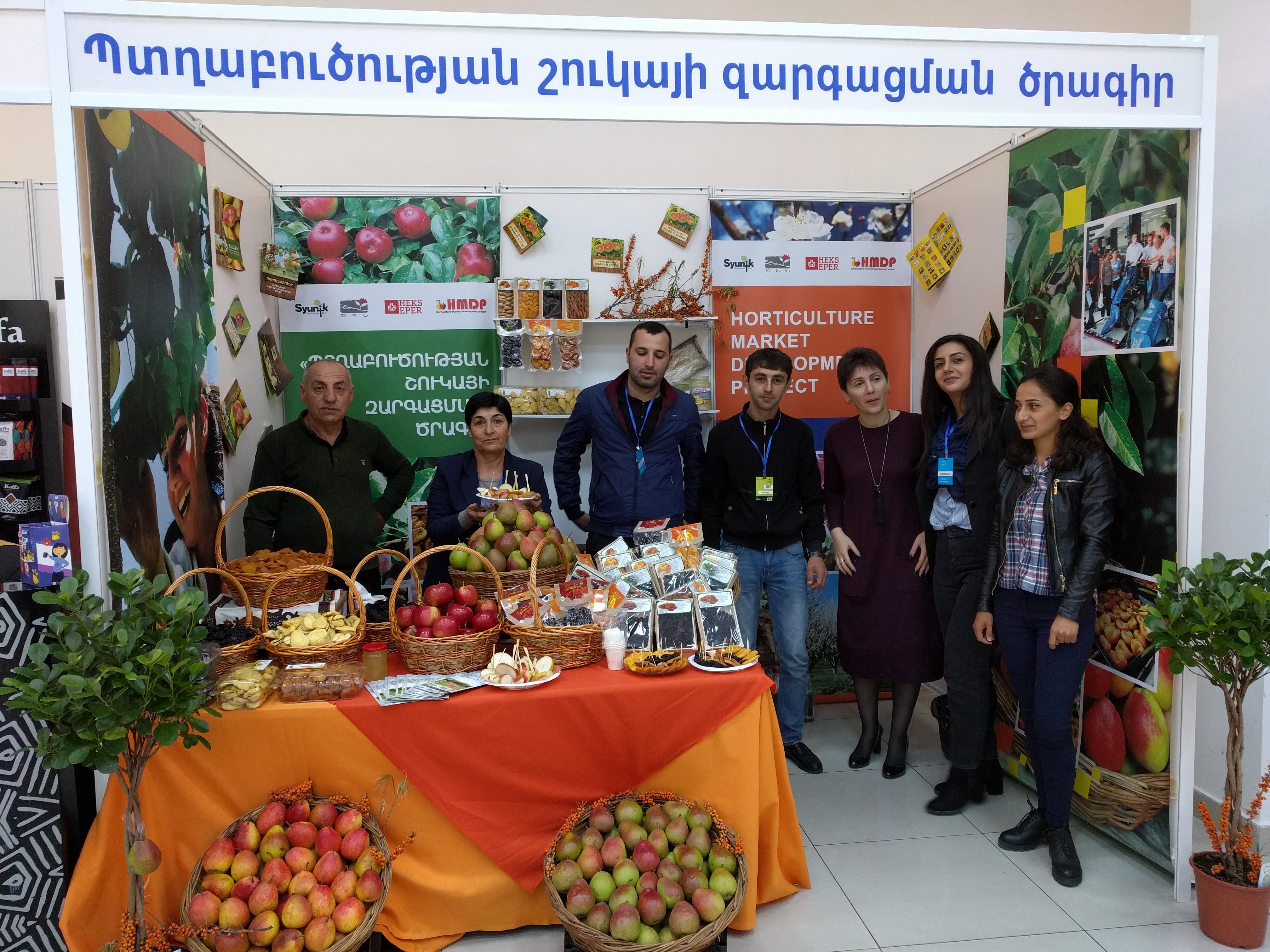 Ս․թ․ նոյեմբերի 2-4 տեղի ունեցավ տարեկան ԱրմՊրոդԷքսպո 2018 ցուցահանդեսը՝ Հայաստանում սննդամթերքի ոլորտի ձեռնարկությունների ամենախոշոր ստուգատեսը։ Այս ցուցահանդեսին մասնակցեցին նաև «Պտղաբուծության շուկայի զարգացման ծրագրի» շահառու մարկետինգային խմբեր Գեղարքունիքի և Վայոց Ձորի մարզերից, որոնք ներկայացնում էին իրենց տարածաշրջանների արտադրության թարմ և վերամշակված մրգերը՝ ընդհանուր առմամբ հինգ մարկետինգային խմբերի արտադրանք։ Մեր տաղավարը մեծ հետաքրքրություն էր առաջացրել ցուցահանդեսի այցելուների շրջանում, որի ժամանակ շահագրգռված գործարարները համագործակցության նախնական պայմանավորվածություններ ձեռք բերեցին ներկա մարկետինգային խմբերի ներկայացուցիչների հետ։ Այսուհետ ամեն տարի այս ցուցահանդեսին կմասնակցեն ծրագրի շահառու նոր ստեղծվելիք և հին մարկետինգային խմբեր։