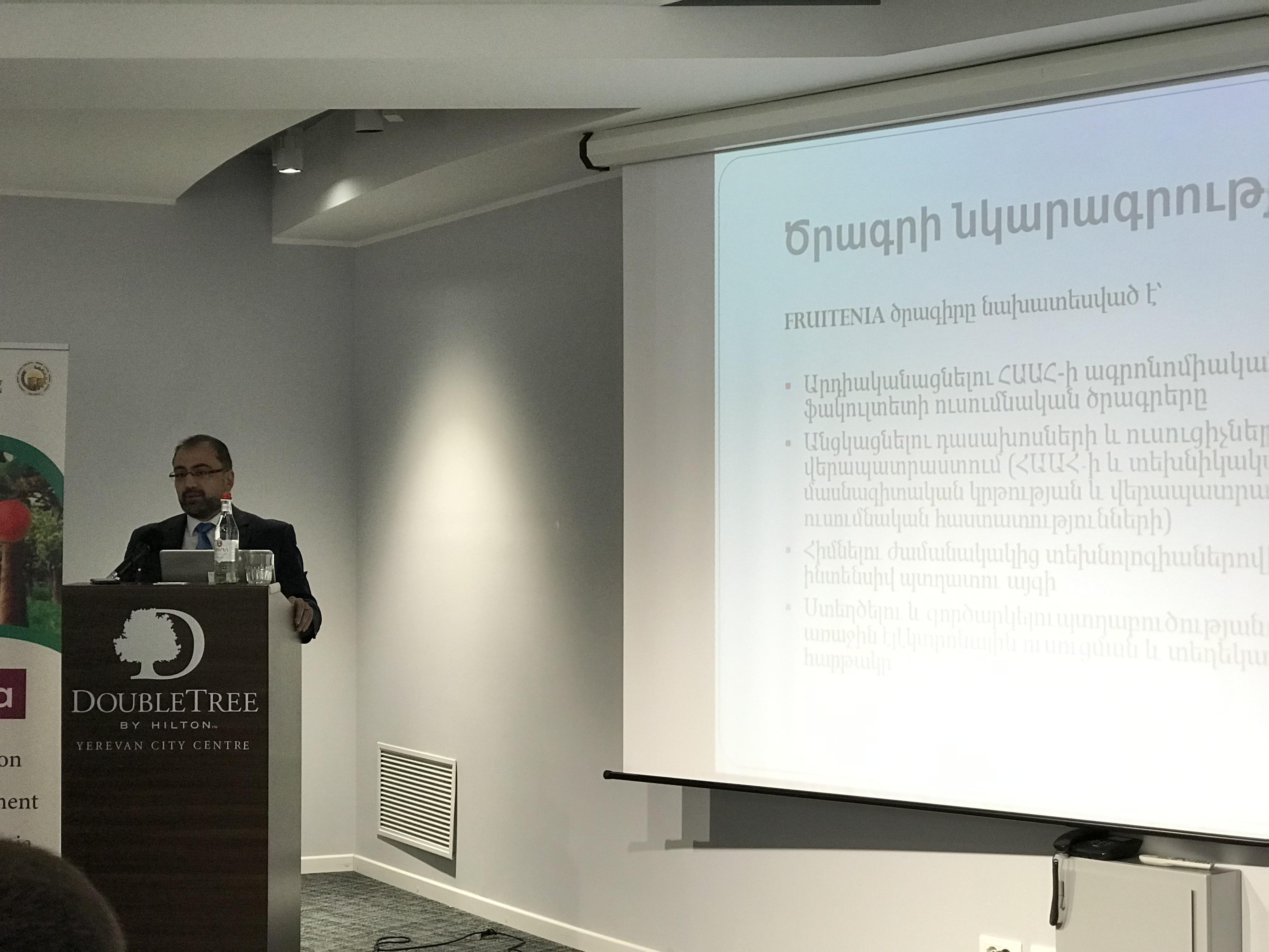Փետրվարի 14-ին մեկնարկեց «Հայաստանում այգեպտղաբուծության ոլորտի զարգացման» ծրագիրը, որը իրականացվում է Ագրոբիզնեսի ուսուցման կենտրոնի (ՖՐՈՒՏԵՆԻԱ) կողմից: ՇԵՆ ԲՀԿ-ն միջոցառմանը ապահովել էր պրակտիկ 7 պտղաբույծների մասնակցությունը՝ Արմավիրի, Արագածոտնի, Գեղարքունիքի, Վայոց Ձորի մարզերից: Շենի նպատակն է կապ ապահովել գյուղատնտես խորհրդատուների և Շեն ԲՀԿ պտղաբույծ շահառուների միջև՝ հնարավոր համագործակցության ուղիներ փնտրելու համար, ինչպես նաև՝ հնարավորության դեպքում վերջիններին մասնակից դարձնել այս ծրագրին: Բանախոսները ներկայացրեցին ծրագրի ընդհանուր նպատակները: Ծրագրի շրջանակներում նախատեսվում է արդիականացնել Հայաստանի ազգային ագրարային համալսարանի ագրոնոմիական ուղղվածությամբ առարկաները, ներկայացնել դասավանդման նոր մեթոդներ, վերապատրաստվել համապատասխան առարկաները դասավանդող դասախոսներին: Ֆերմերների համար անցկացվելու են գործնական կարճաժամկետ դասընթացներ՝ ժամանակակից այգեգործության մեթոդները ներկայացնելու նպատակով: Ծրագրի մյուս բաղադրիչով Ագրարային համալսարանի Ոսկեհատի տնտեսությունում կհիմնվի ինտենսիվ պտղատու այգի՝ կրթական նպատակով օգտագործելու համար: