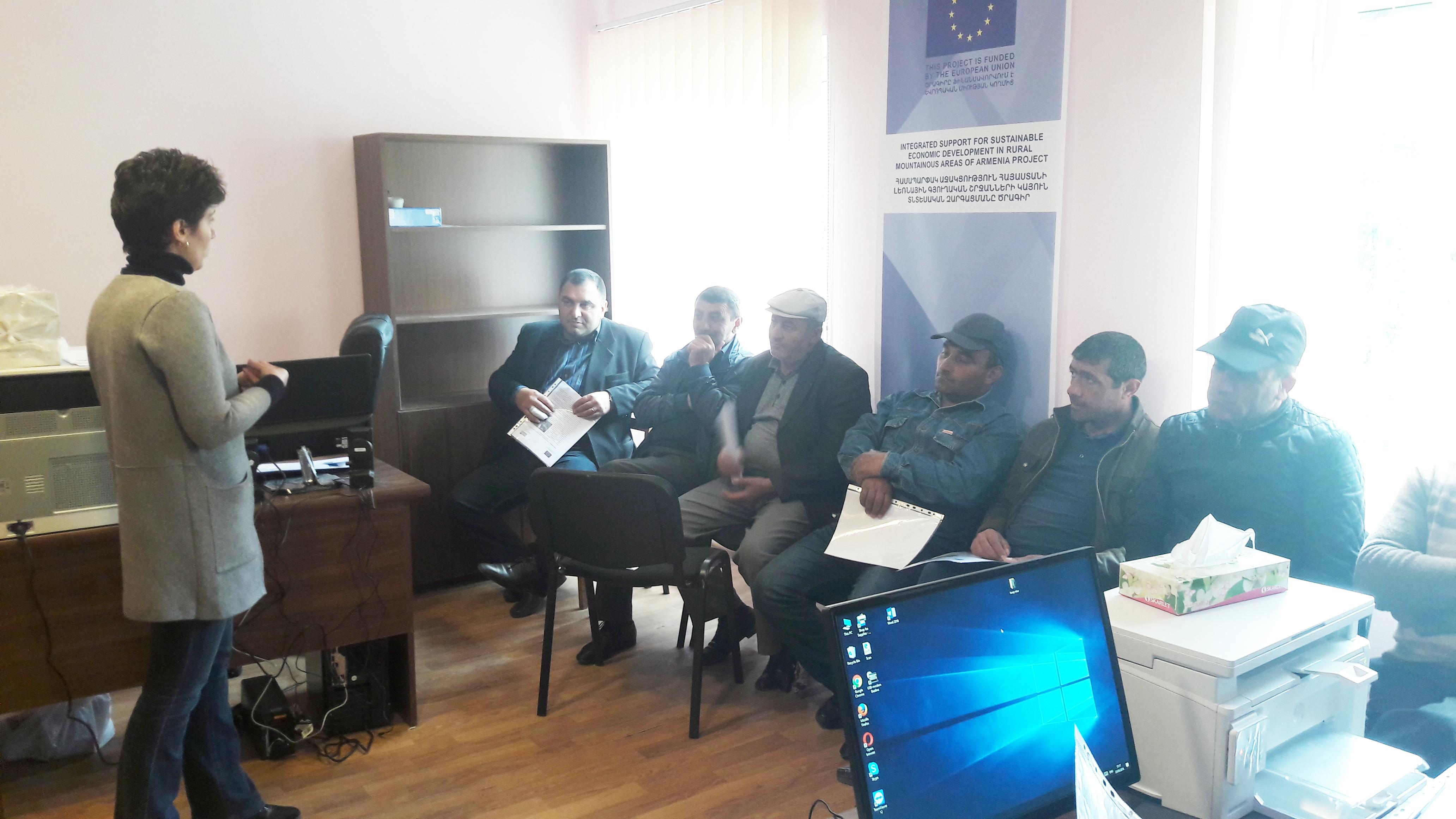 On May 23 and 29 "Integrated Support for Sustainable Economic Development in Rural Mountainous Areas of Armenia" project conducted a practical training on Cultivation Techniques and Peculiarities of the Most Valuable Cultivars Suitable for That Geographic Zone for beneficiary communities of Shaki, Shaghat, Angeghakot, Areguni, Pambak and Geghamasar in Syunik and Vardenis provinces. 27 members participated in the seminar. At the end of the workshop, each cooperative was provided with 100 seedlings of mint (grown in the Institute of Problems of Hydroponics). Cultivation of this variety of mint will allow to expand the list of plants offered by the cooperative, which will result in additional income.