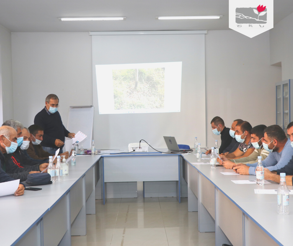 On October 29, the training was held for the displaced farms in Vardenis, Gegharkunik Marz, and on November 2, for the beneficiary farms in Yeghegnadzor, Vayots Dzor Marz. The main purpose was to present the key measures of post-harvest and late fall care in the orchards.